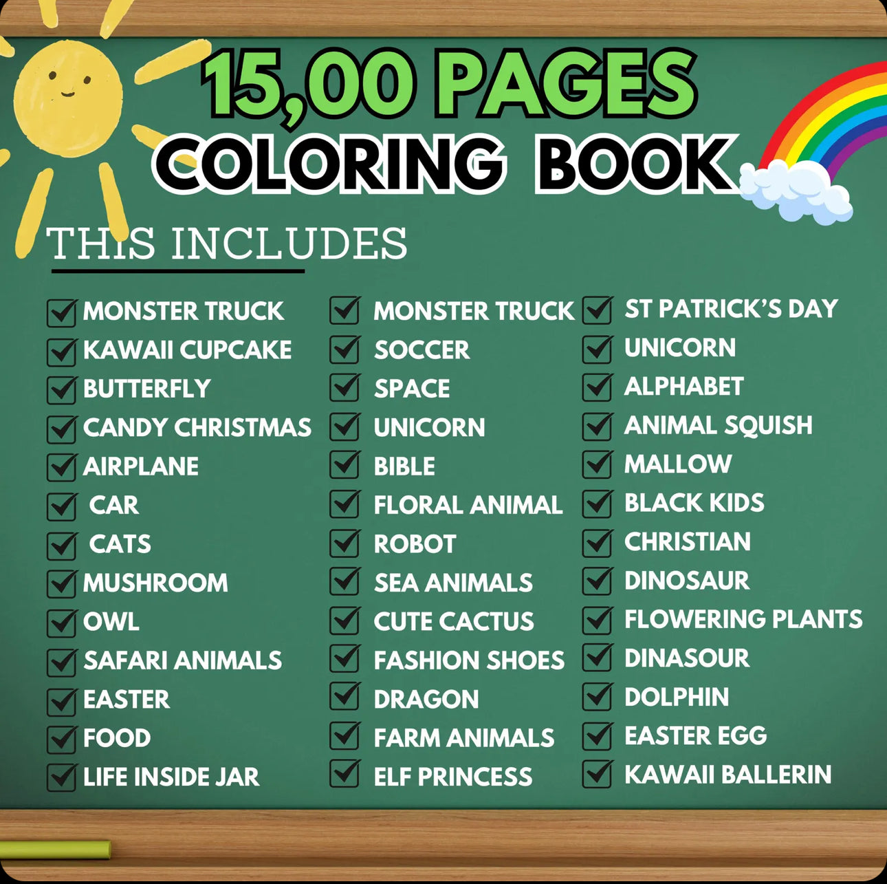 Unleash creativity and build your digital product empire with this massive bundle of over 15,000 professionally designed, kid-friendly coloring pages! Perfect for creating KDP interiors, printable activity books, or digital downloads — all with full PLR rights.