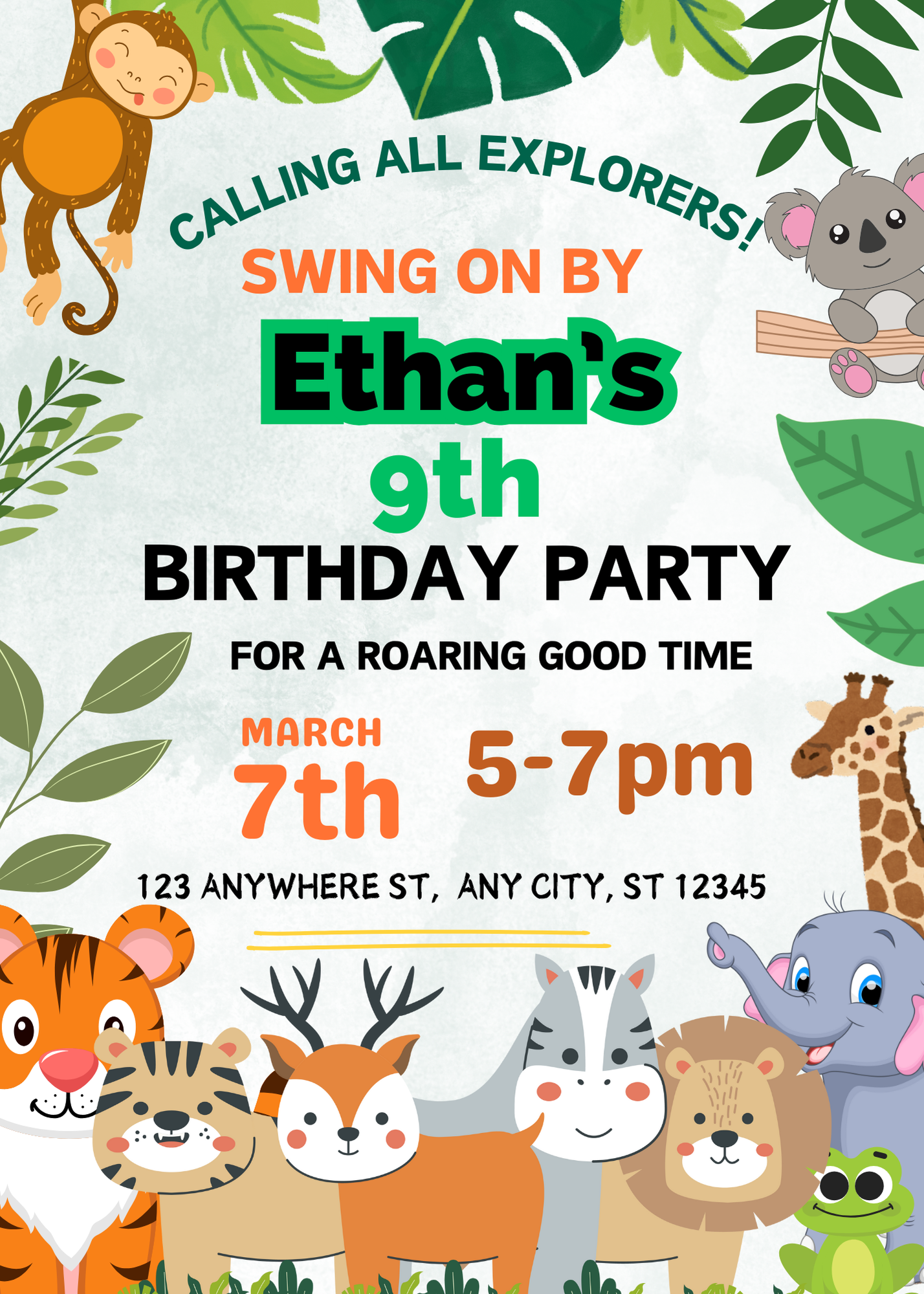 This bundle of 50 editable kids' birthday invitation templates is perfect for busy parents, party planners, and digital product sellers alike! Designed in Canva, each template is super easy to customize — just add your details, download, and you're ready to celebrate or start selling.